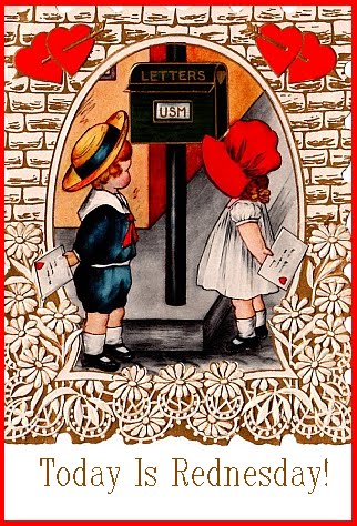 loving your Valentine reds...I have that same angel and she has a broken wing...maybe I should give her some fethery wings like t=your girl...so cute...and I LOVE the tablecloth...so pretty! Thanks for having me here again for Rednesday!!! Hugs,Mica